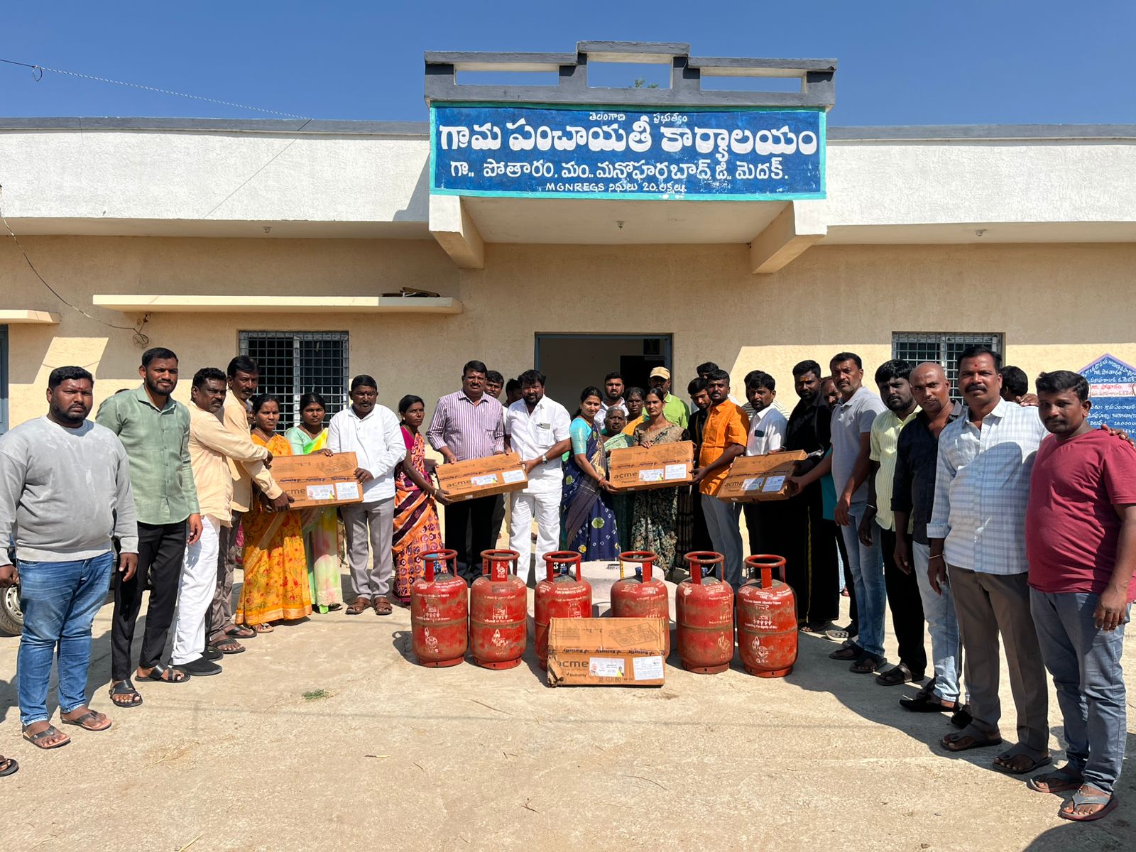 మనోహరాబాద్ పరివర్తన అవాజ్ డిసెంబర్ 16, మనోహరాబాద్ మండలంలో ని పోతారం గ్రామ నూతన సర్పంచ్ పుట్ట వినోద మహేందర్ తో కలిసి పోతారం లో అర్హులకు ప్రధాన మంత్రి ఉజ్వల యోజన (PMUY) కింద పేదరిక రేఖకు దిగువన ఉన్న కుటుంబాల మహిళలకు భారత ప్రభుత్వం అందించే ఉచిత ఎల్పీజీ గ్యాస్ కనెక్షన్ పథకం, దీని ద్వారా మహిళలకు ఆరోగ్యకరమైన వంట కోసం LPG కనెక్షన్లు, స్టవ్, మరియు మొదటి రీఫిల్ ఉచితంగా లభిస్తాయి ఈ కార్యక్రమం లో మాజీ మండల అధ్యక్షులు నరేందర్ చారి, ఉపసర్పంచ్ నరేందర్,బూత్ అధ్యక్షులు మంచి సాయి రామ్, వార్డు సభ్యులు శ్రీహరి గౌడ్,వికాస్, సోషల్ మీడియా కన్వీనర్ గిరీష్,కిరణ్,
