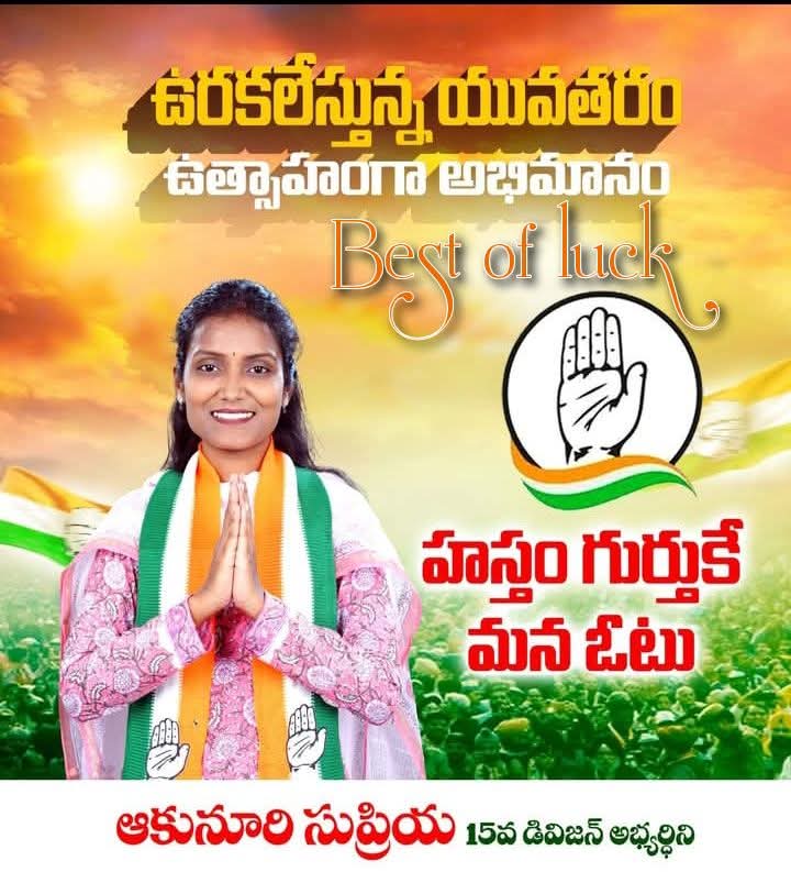 తమపై నమ్మకం ఉంచి రాబోయే ఎన్నికల్లో భారీ మెజారిటీతో గెలిపించాలని 15వ వార్డు ప్రజలను ఆకునూరి సుప్రియ విజ్ఞప్తి చేశారు. కాంగ్రెస్ పార్టీ అభివృద్ధి లక్ష్యాలు, సంక్షేమ కార్యక్రమాలను ప్రజల్లోకి తీసుకెళ్లడమే తన ప్రధాన ధ్యేయమని ఆమె అన్నారు.